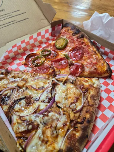 Two classic NY slices + a drink.